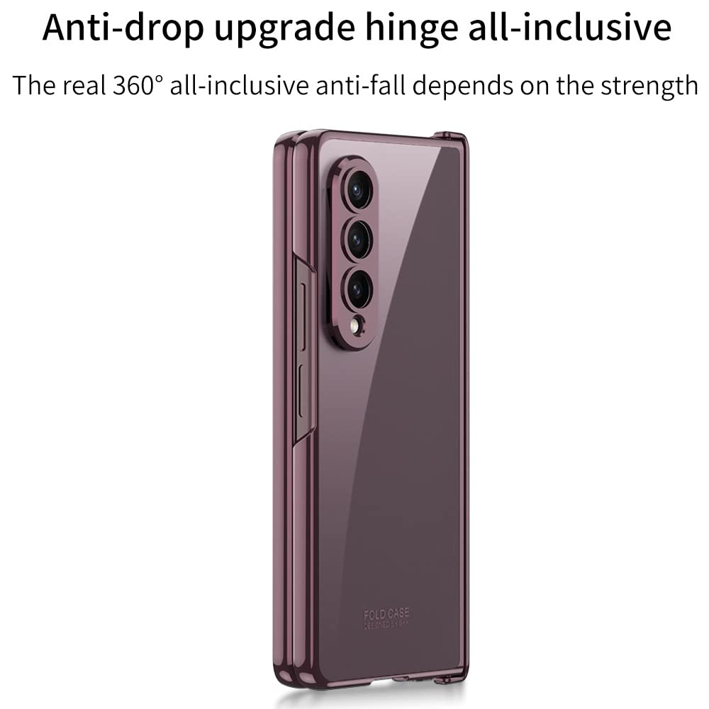 Midkart Automatic Recovery Magnetic Hinge Protection Cover Compatible with Samsung Galaxy Z Fold 4 Hard PC Electroplated Borders Anti-Yellowing Protective Case, Transparent & Burgundy