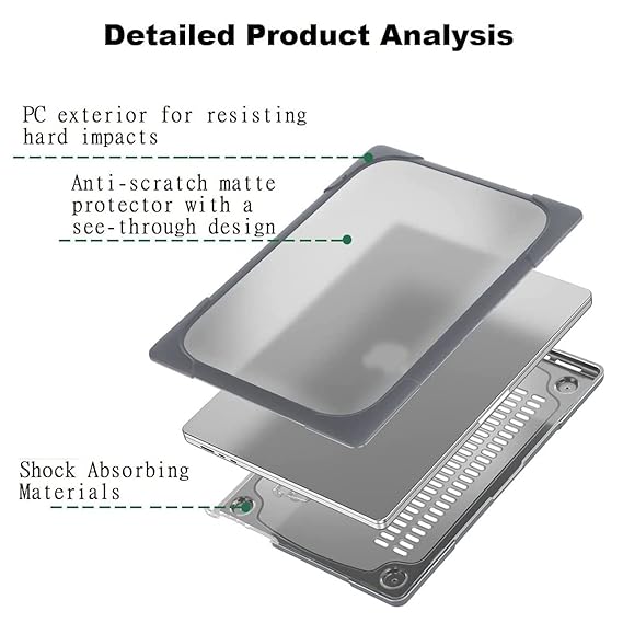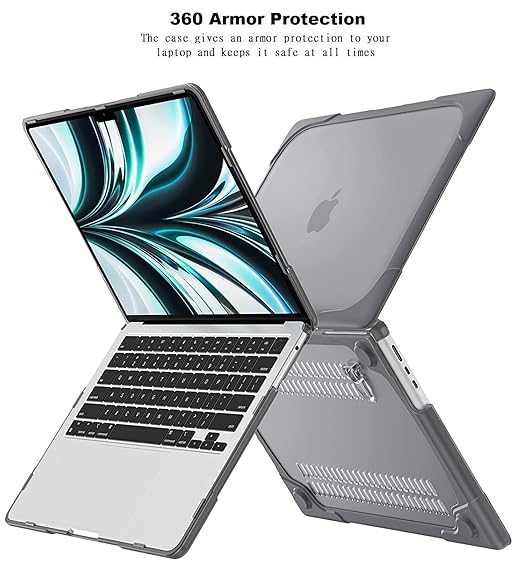 Midkart Case Compatible with MacBook Air 13.6 inch Model M3 A3113 M2 A2681 Release 2024 2023 2022 with Touch ID Heavy Duty Hard Shell Plastic Cover Keyguard & Dust Plugs Shockproof Cover, Grey