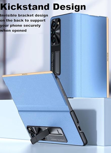 Midkart Magnetic Leather Flip Cover with Kickstand Compatible with Samsung Galaxy Z Fold 5 with Hinge Protection Scratch-Resistant Protective Case, Blue