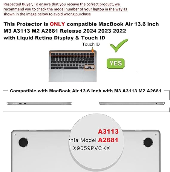 Midkart Pet Film Screen Guard Compatible with MacBook Air 13.6 inch M3 A3113 M2 A2681 Release 2024 2023 2022 with Liquid Retina Display & Touch ID Screen Protector, Matte